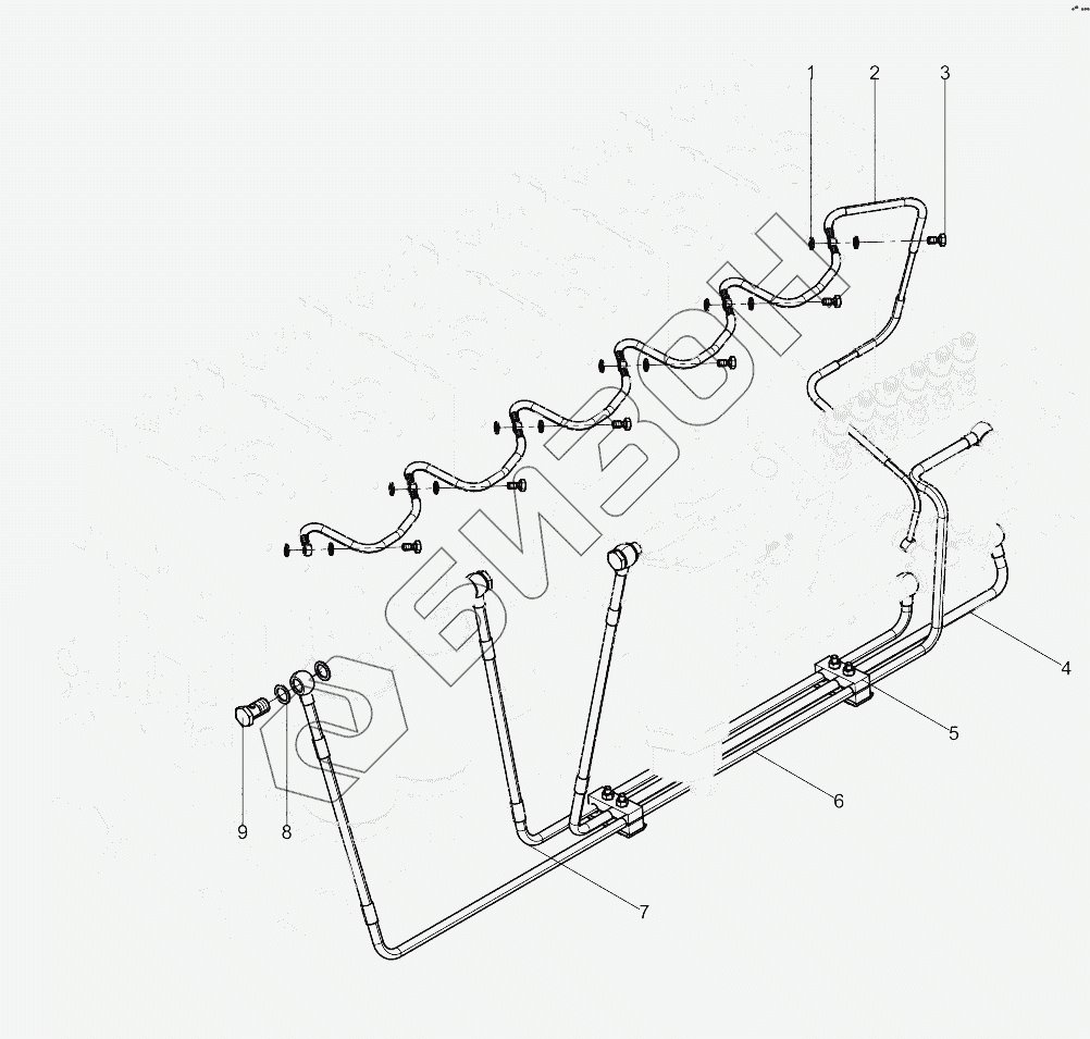 Графический каталог запасных частей к технике: Weichai 6M11 DHM16D0002. Low Pressure Fuel Pipe Group