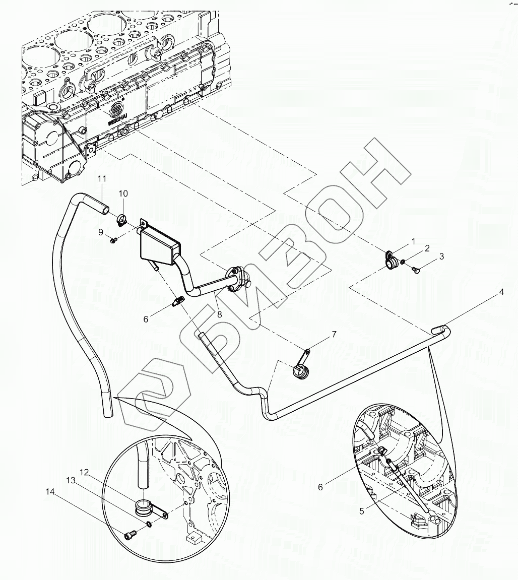 Графический каталог запасных частей к технике: Weichai 6M11 DHM16D0002. Oil-gas Separator Group