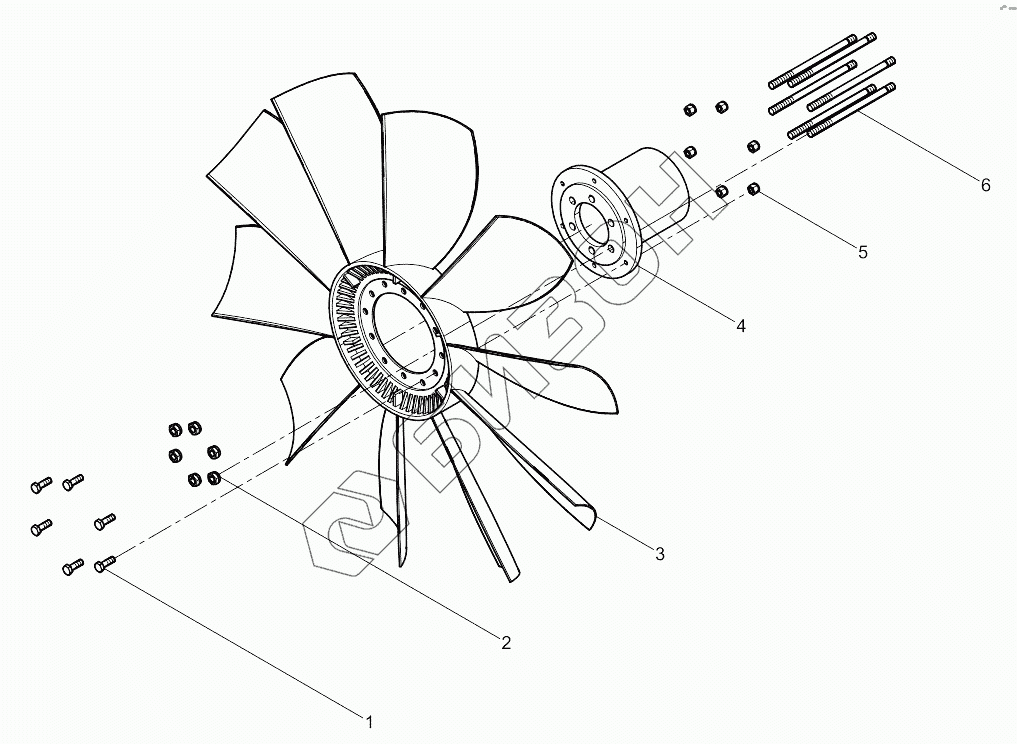 Графический каталог запасных частей к технике: Weichai 6M11 DHM16D0006. Fan and Hub Group