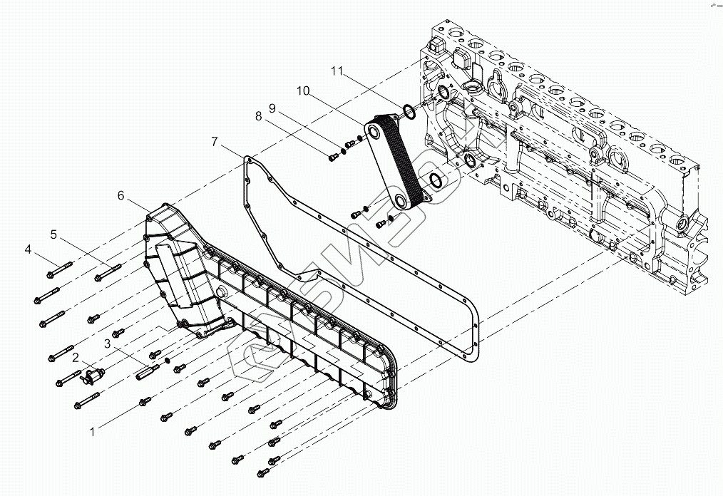 Графический каталог запасных частей к технике: Weichai 6M11 DHM16D0006. Oil Cooler Group
