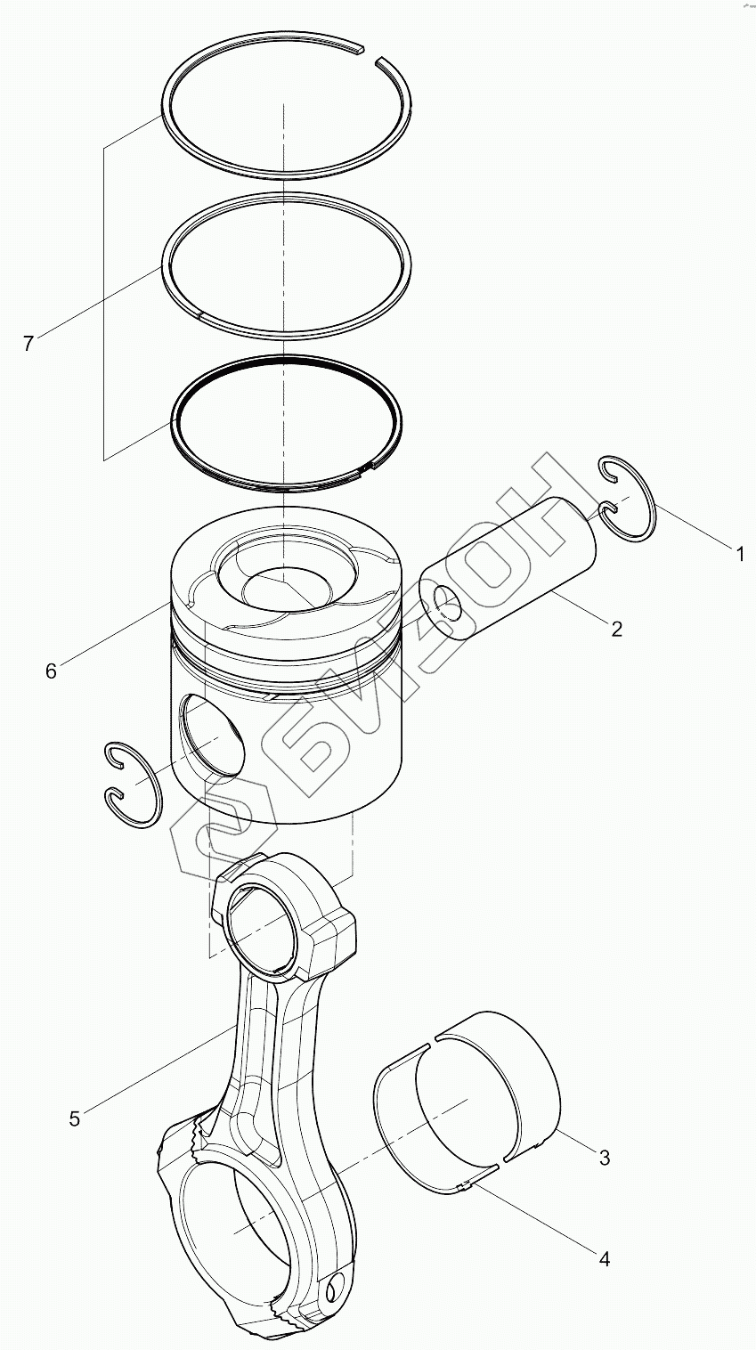 Графический каталог запасных частей к технике: Weichai 6M11 DHM16D0006. Piston and Connecting Rod Group