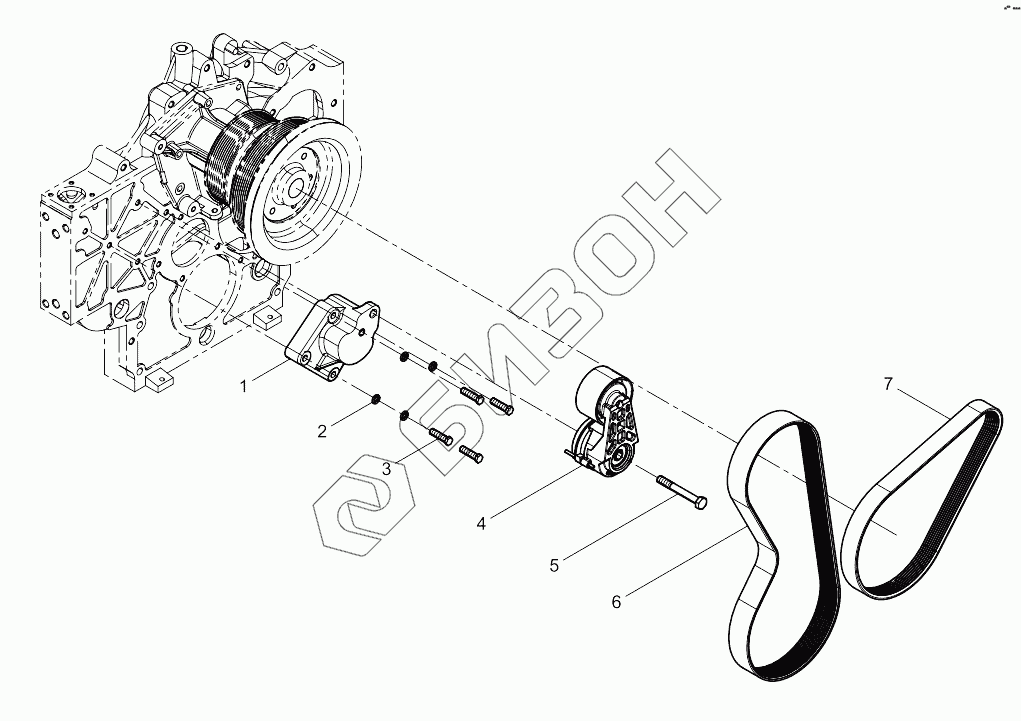 Графический каталог запасных частей к технике: Weichai 6M11 DHM16D0006. Tensioner And Belt Group
