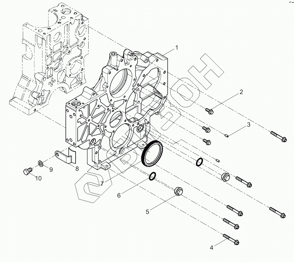 Графический каталог запасных частей к технике: Weichai 6M11 DHM16D0006. Timing Gear Housing Group