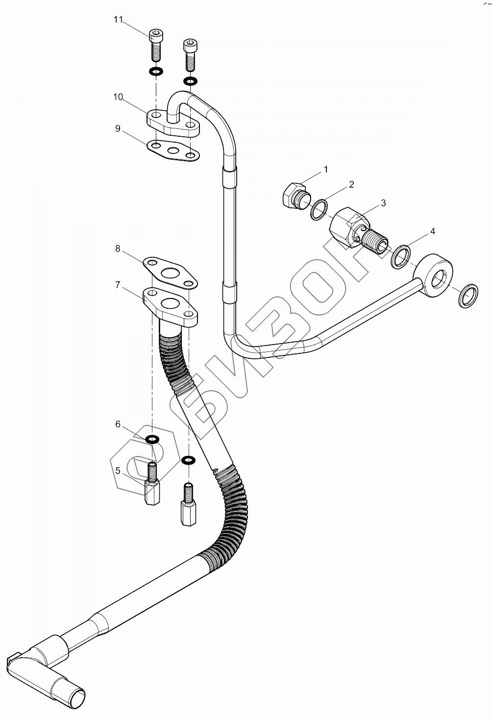 Графический каталог запасных частей к технике: Weichai 6M11 DHM16D0006. Turbocharger Oil Pipe Group