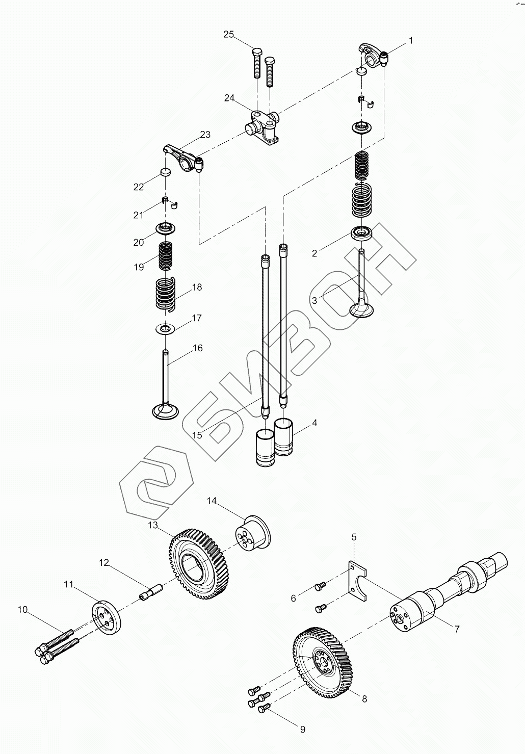 Графический каталог запасных частей к технике: Weichai 6M11 DHM16D0006. Valve Train Group