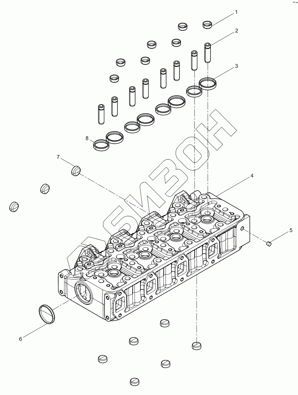 Графический каталог запасных частей к технике: Weichai BAUDOUIN 4M06G33. Cylinder Head Subassembly