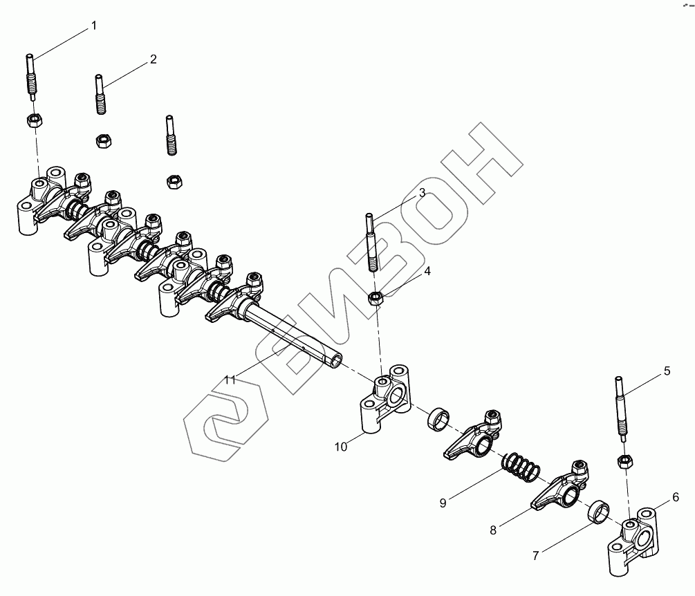 Графический каталог запасных частей к технике: Weichai BAUDOUIN 4M06G33. Integrated Rocker Arm Shaft Assembly
