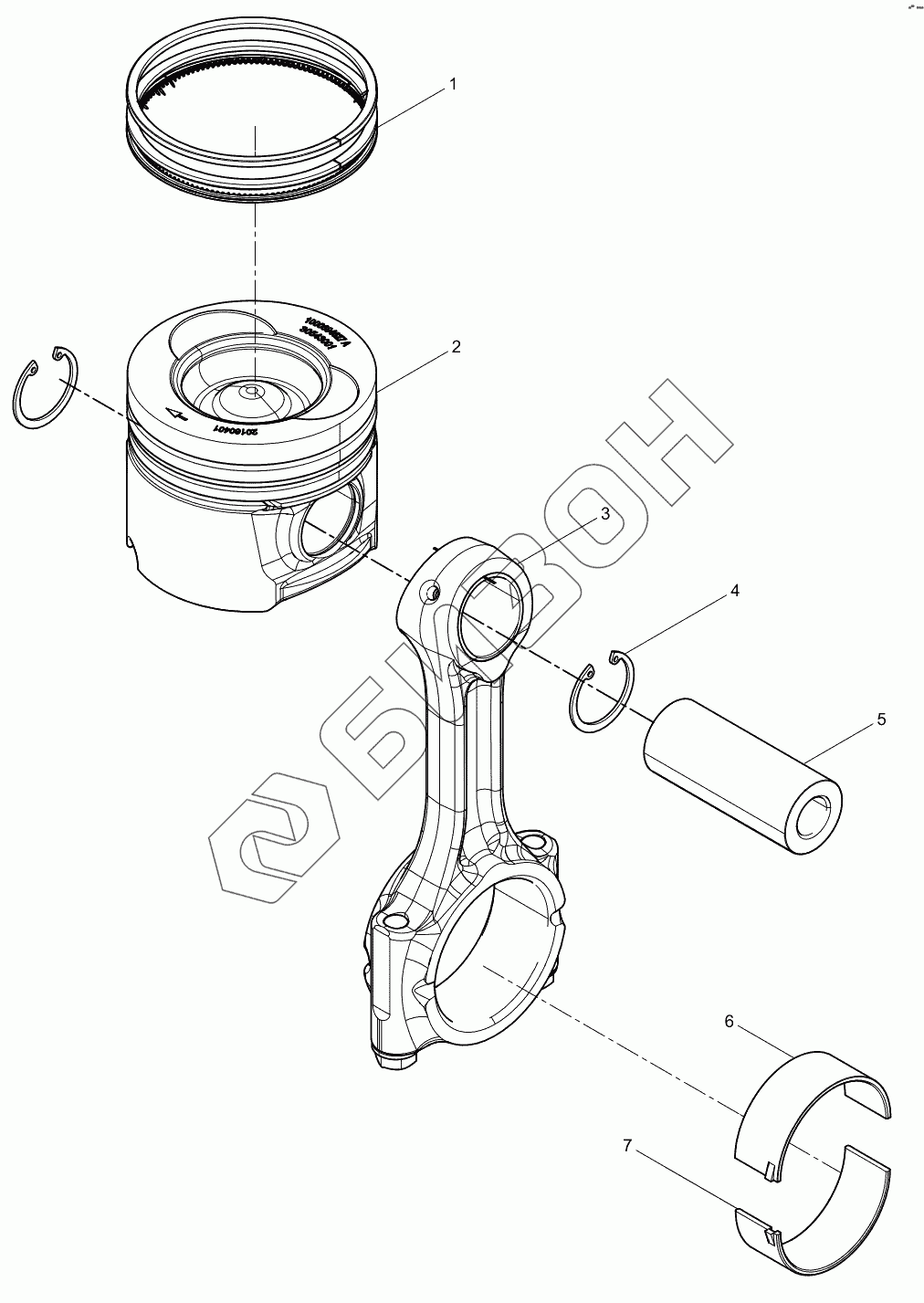 Графический каталог запасных частей к технике: Weichai BAUDOUIN 4M06G33. Piston and Connecting Rod Group