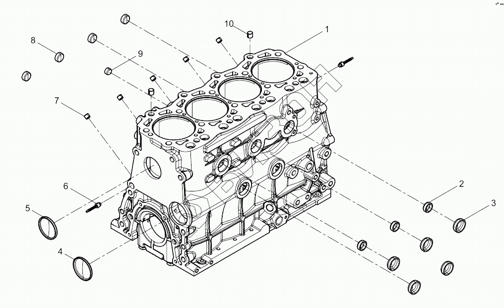 Графический каталог запасных частей к технике: Weichai BAUDOUIN 4M06G33. Сrankcase assembly