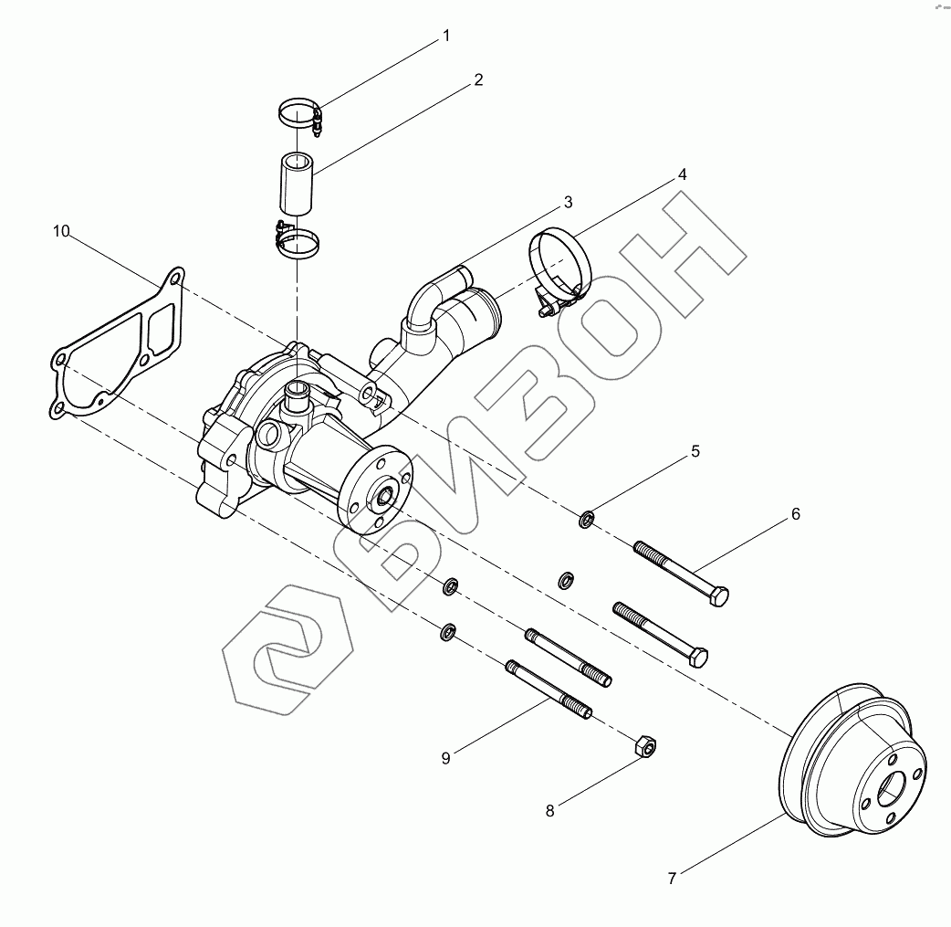 Графический каталог запасных частей к технике: Weichai BAUDOUIN 4M06G44. Water Pump Group