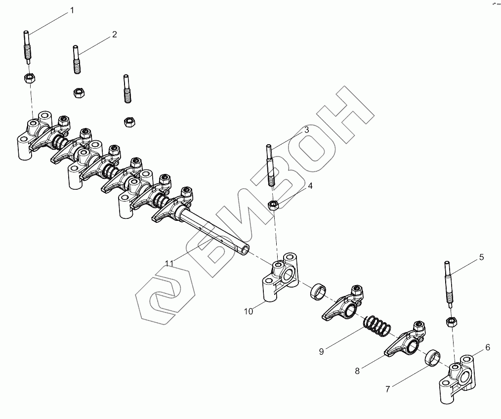 Графический каталог запасных частей к технике: Weichai BAUDOUIN 4M06G50. Integrated Rocker Arm Shaft Assembly