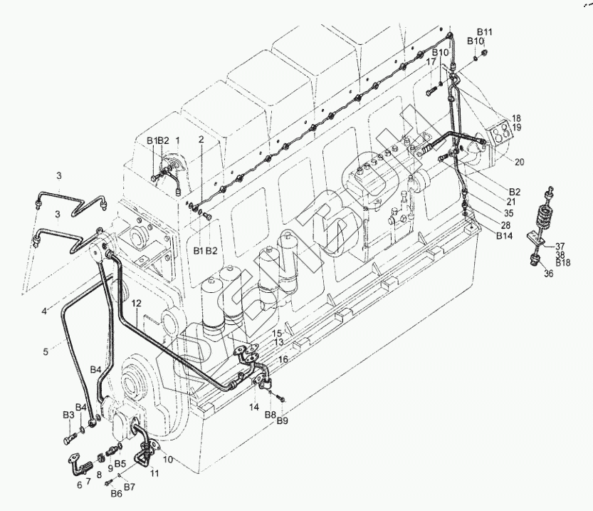 | 35 | 616022023000 | Oil outlet pipe for fine filter sub-assy |