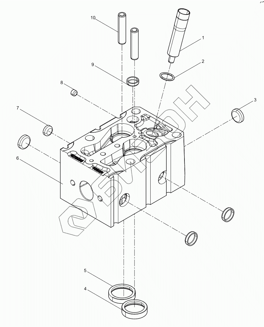 Графический каталог запасных частей к технике: Weichai WD10 (DHD10G0208). Cylinder head subassembly