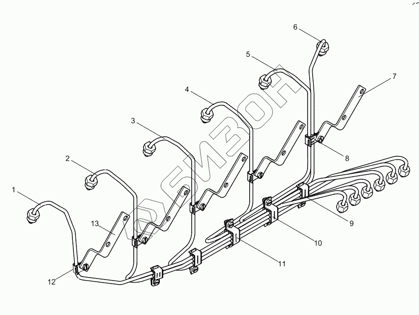 Графический каталог запасных частей к технике: Weichai WD10 (DHD10G0208). High pressure pipe assembly