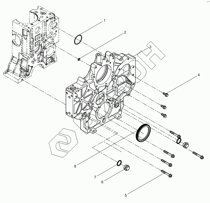Графический каталог запасных частей к технике: Weichai WD10 (DHD10G0208). Timing Gear Housing Group