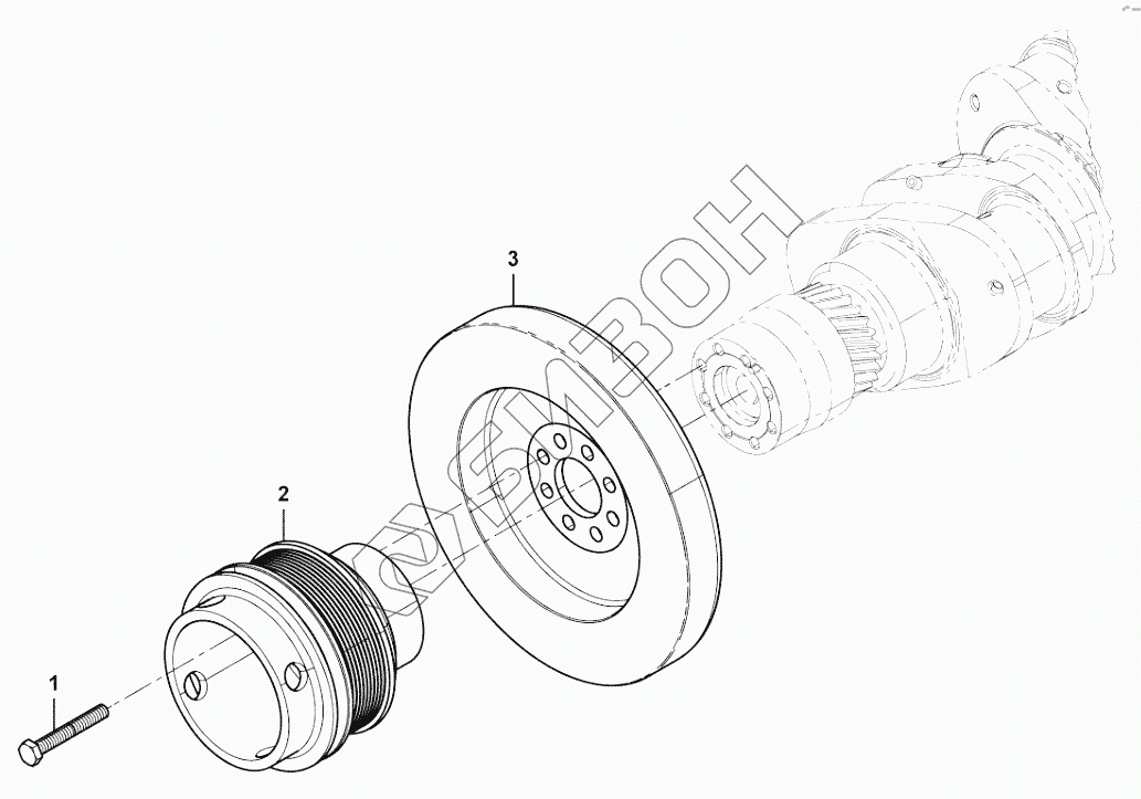 Графический каталог запасных частей к технике: Weichai WD10 G220E23. Crankshaft pulley group