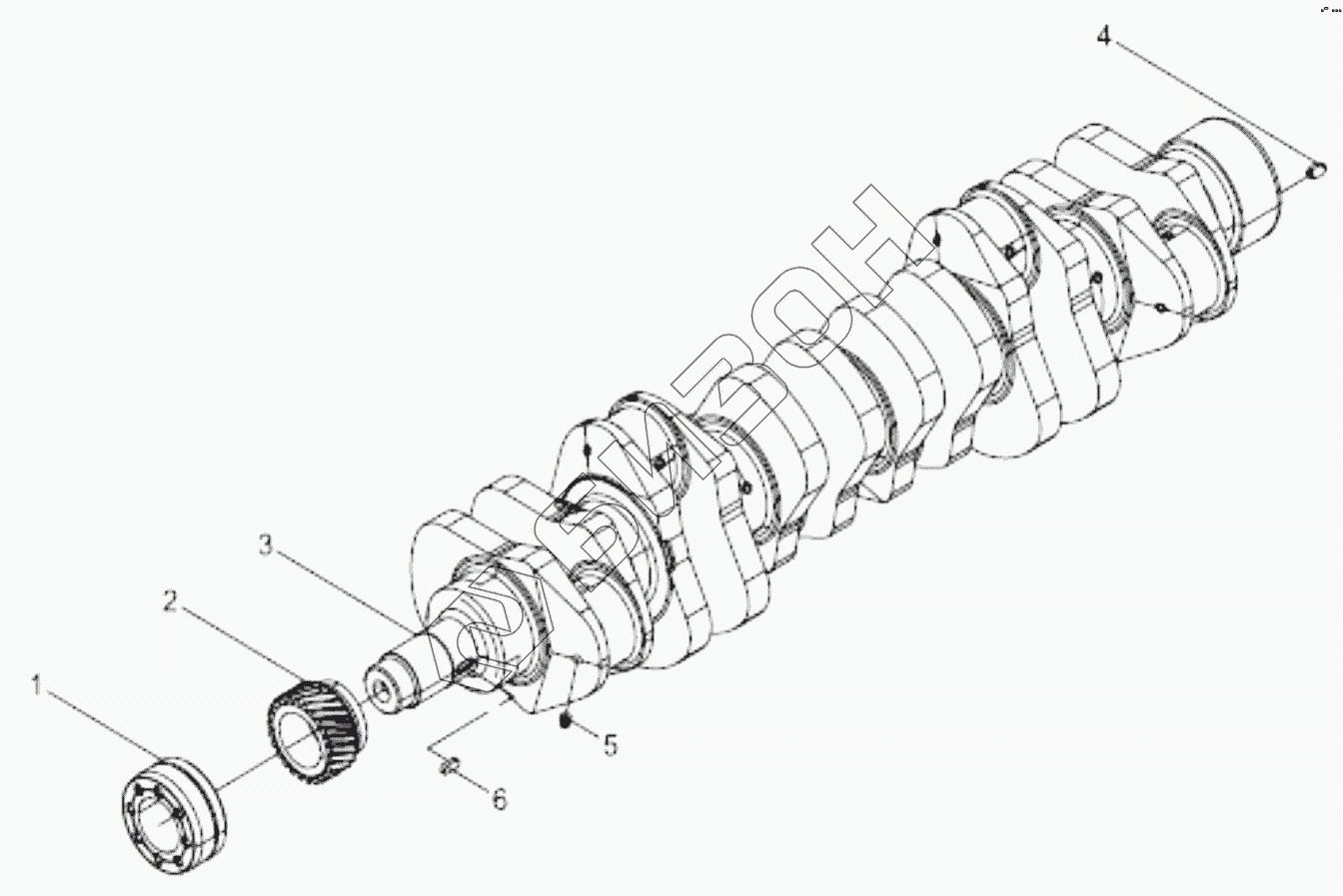 Графический каталог запасных частей к технике: Weichai WD10G220E21. 612600020718 Crankshaft assembly