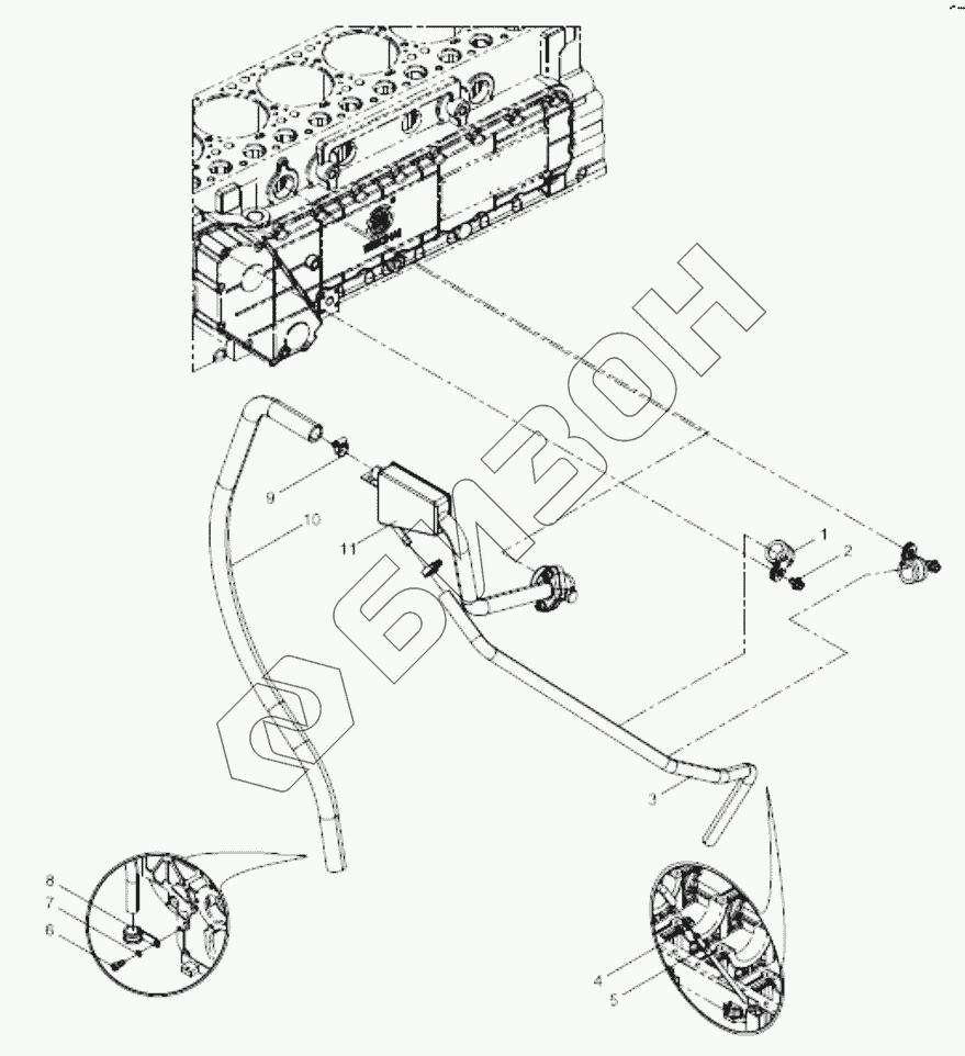 Графический каталог запасных частей к технике: Weichai WD10G220E21. Oil-gas separator group