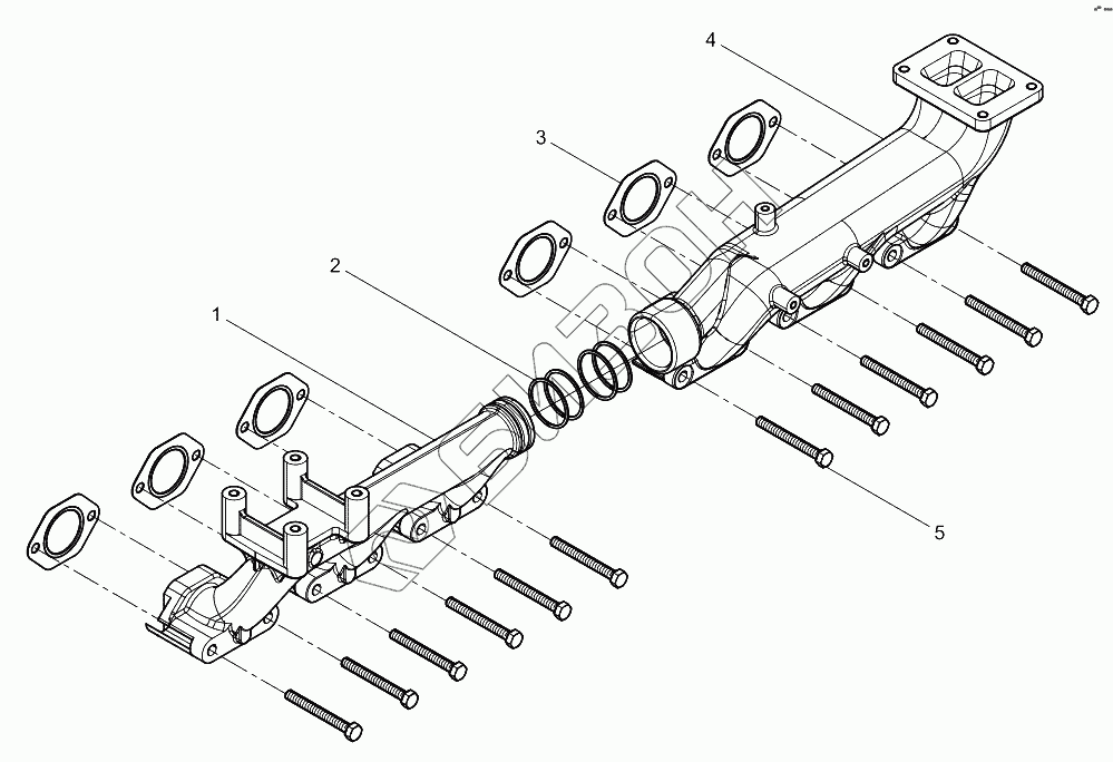 Графический каталог запасных частей к технике: Weichai WD10G220E22. Exhaust Manifold Group
