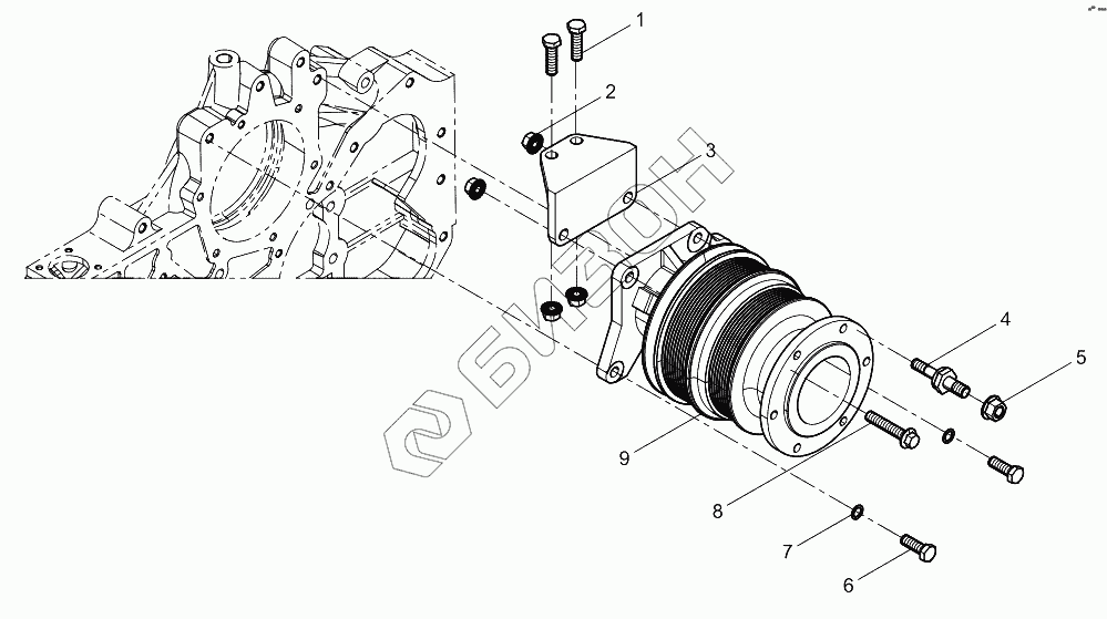 Графический каталог запасных частей к технике: Weichai WD10G220E22. Fan Bracket Group
