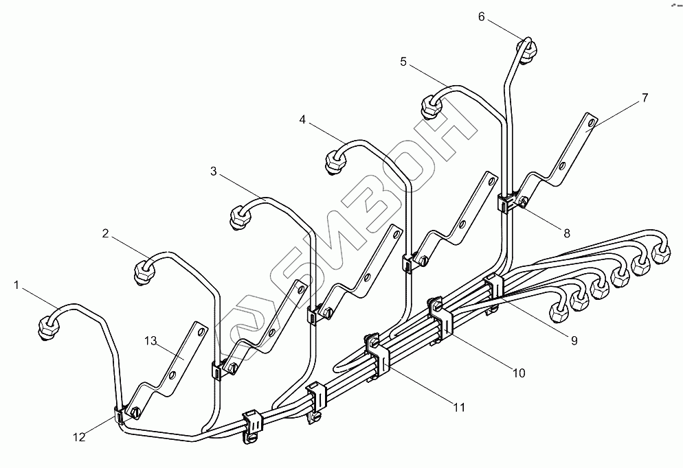 Графический каталог запасных частей к технике: Weichai WD10G220E22. High pressure pipe assembly