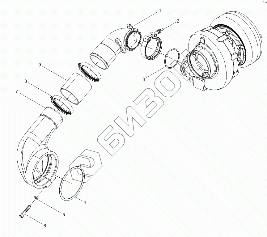 7 612600110053 Впускная изогнутая труба