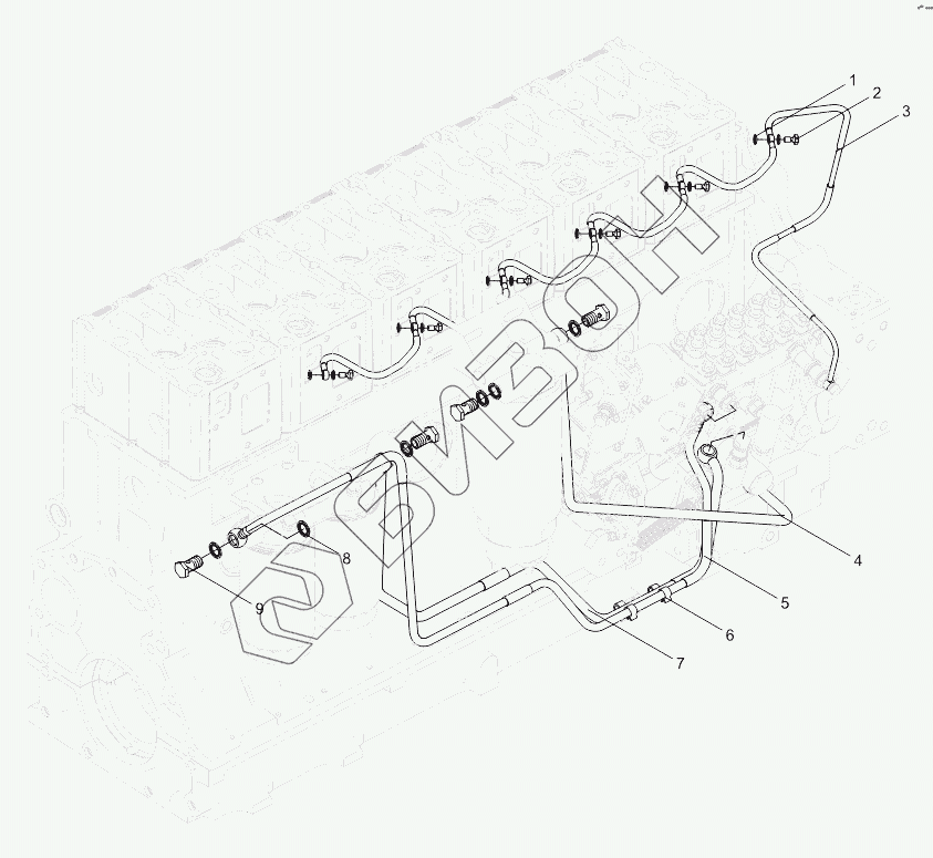 Графический каталог запасных частей к технике: Weichai WD10G220E23 (Евро 2). Low Pressure Oil pipe Group