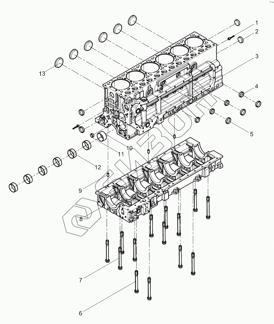 Графический каталог запасных частей к технике: Weichai WD10G220E23 (Евро 2). Pre-assembled cylinder block