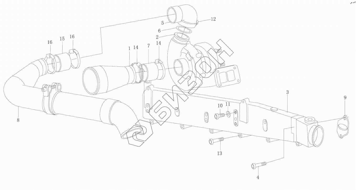 Графический каталог запасных частей к технике: Weichai WD12.390. AlR INTAKE EXHAUST MANlFOLD