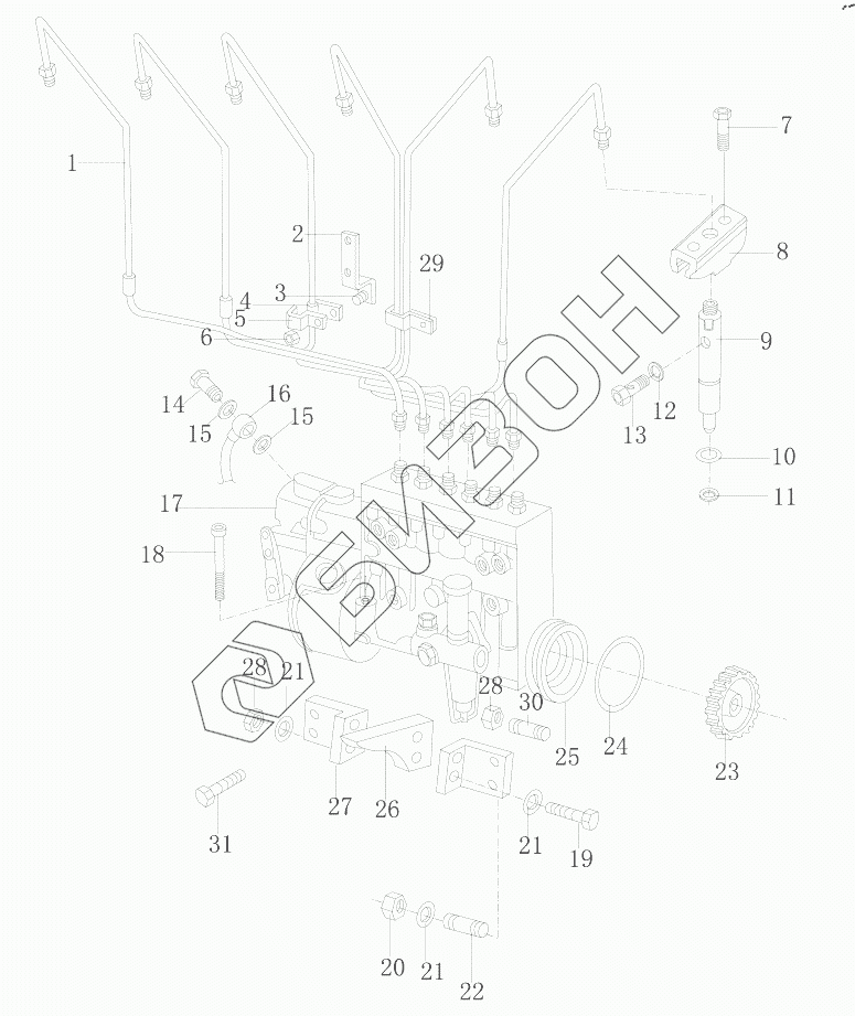 Графический каталог запасных частей к технике: Weichai WD12.420. FUEL INJECTION SYSTEM