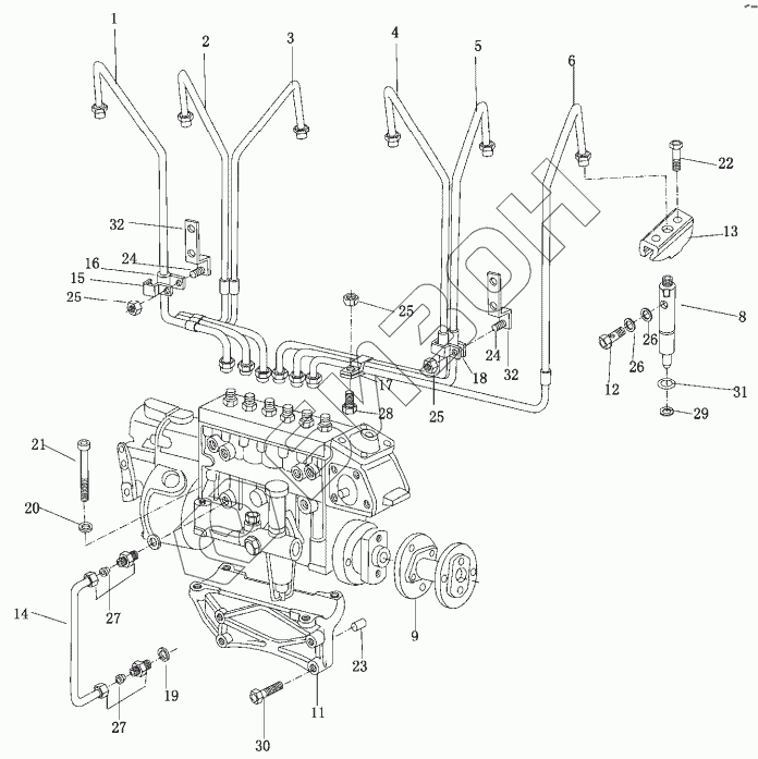 | 6 | 61560080225 | Высоконапорная топливная труба первого цилиндра в сборе |