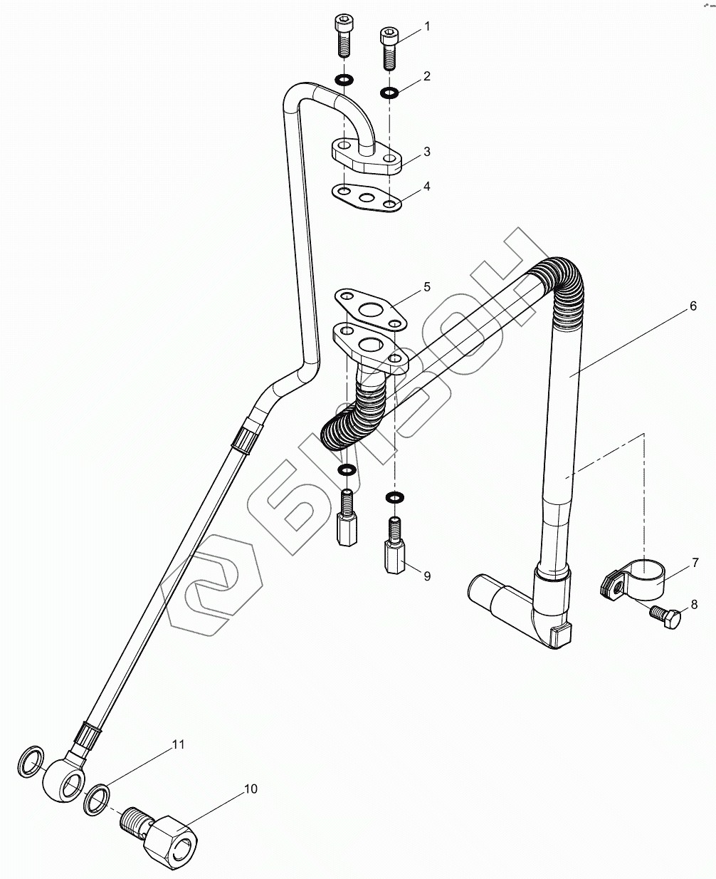 Графический каталог запасных частей к технике: Weichai WP10.336E40. Turbocharger Oil pipe Group