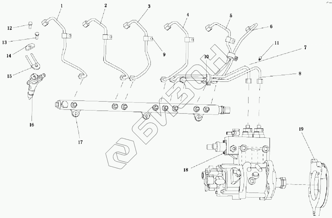 | 8 | 612600080640 | Трубка топливная высокого давления от ТНВД к топливной рампе |