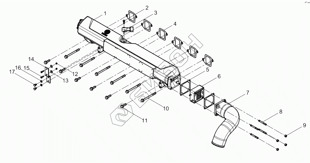 Графический каталог запасных частей к технике: Weichai WP10 DHL10Q0213. Intake Manifold Group