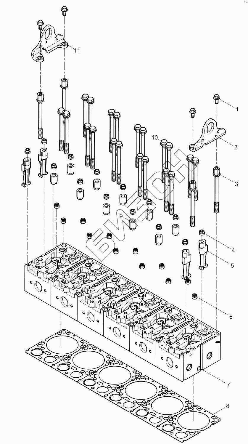 Графический каталог запасных частей к технике: Weichai WP10 DHP10Q0168. Cylinder head assembly