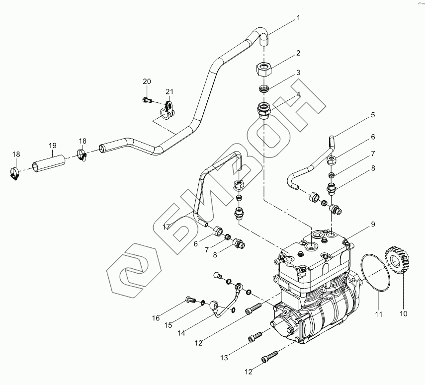 | 5 | 612630030034 | Водоотводная труба компрессора |