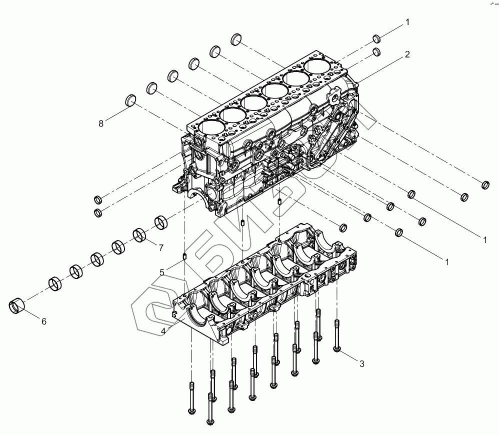 Графический каталог запасных частей к технике: Weichai WP12.375E50. Cylinder Block Preassembly