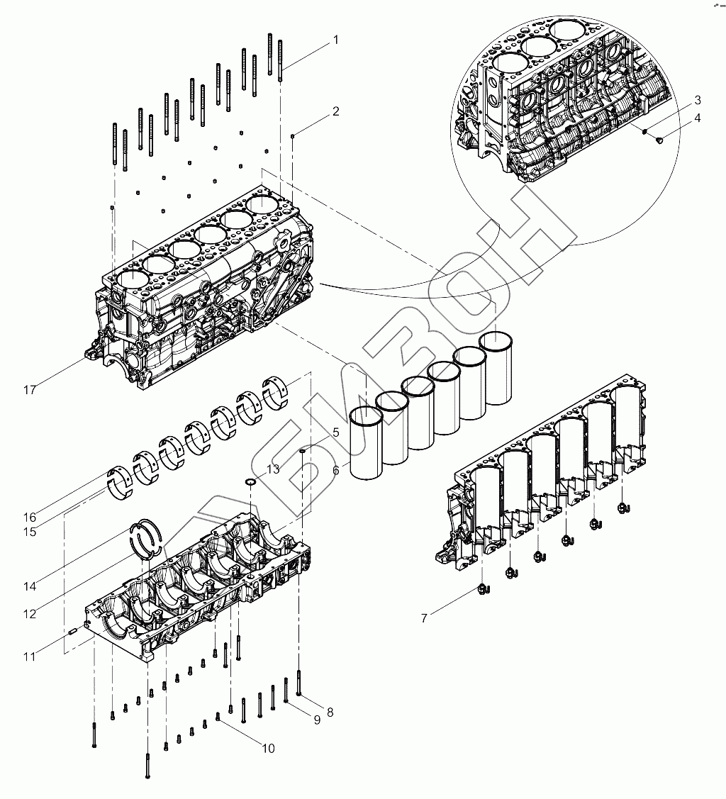 | 15 | 612630010089 | Верхний вкладыш главного подшипника |