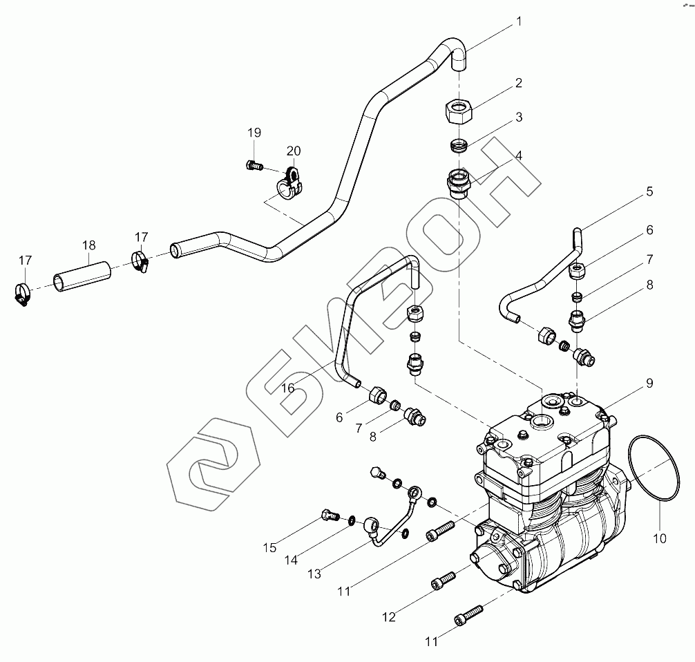 | 13 | 612630030037 | Маслопровод двухцилиндрового воздушного компрессора |