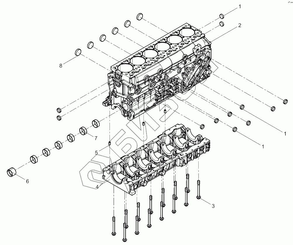 Графический каталог запасных частей к технике: Weichai WP12NG380E51. Cylinder Block Preassembly