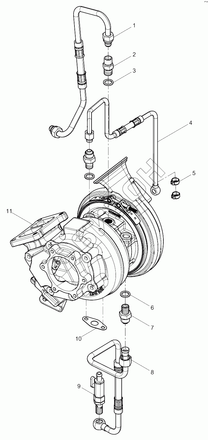 | 4 | 1001127724 | Turbocharger Water Pipe Assembly |