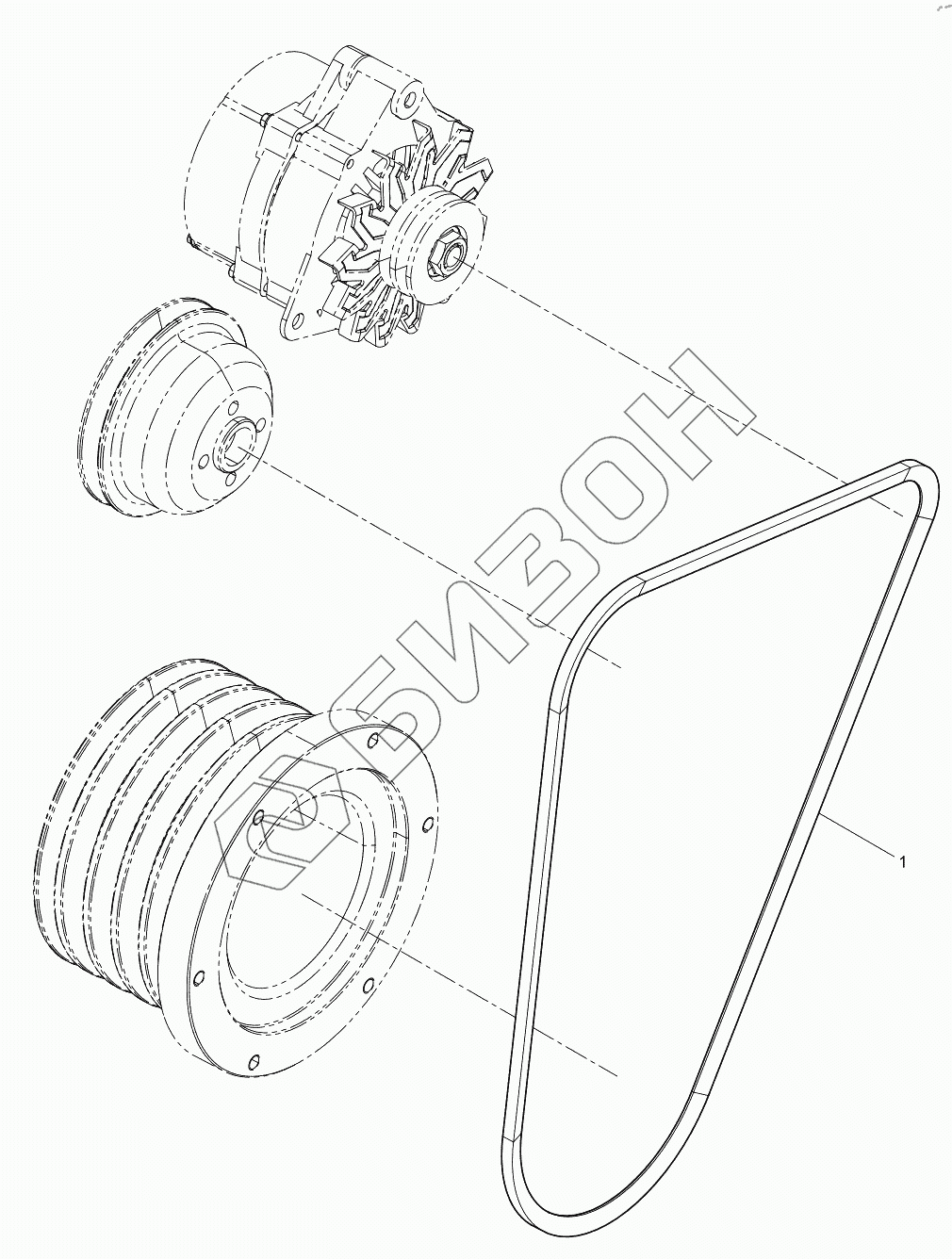 Графический каталог запасных частей к технике: Weichai WP4. Tensioner And Belt Group