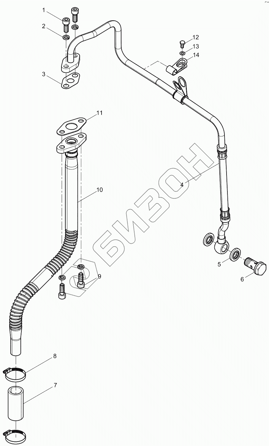 | 4 | 13024456 | Oil inlet pipe assembly of turbocharger |