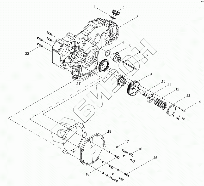 Графический каталог запасных частей к технике: Weichai WP6G125E22. Front wall cover subassembly (gear end)
