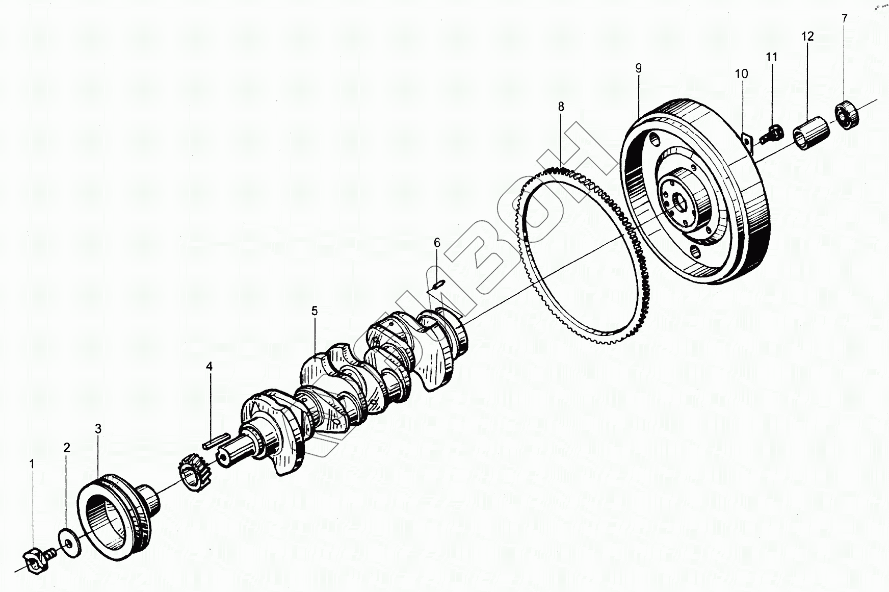 Графический каталог запасных частей к технике: XINCHAI 498BPG. 498ВТ Crankshaft flywheel assembly