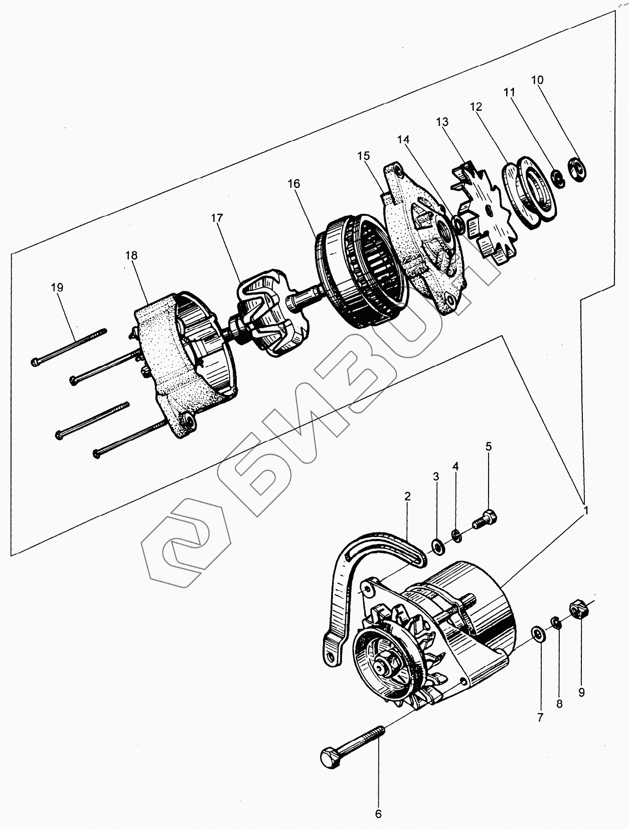 Графический каталог запасных частей к технике: XINCHAI A498BPG. Charging generator assembly