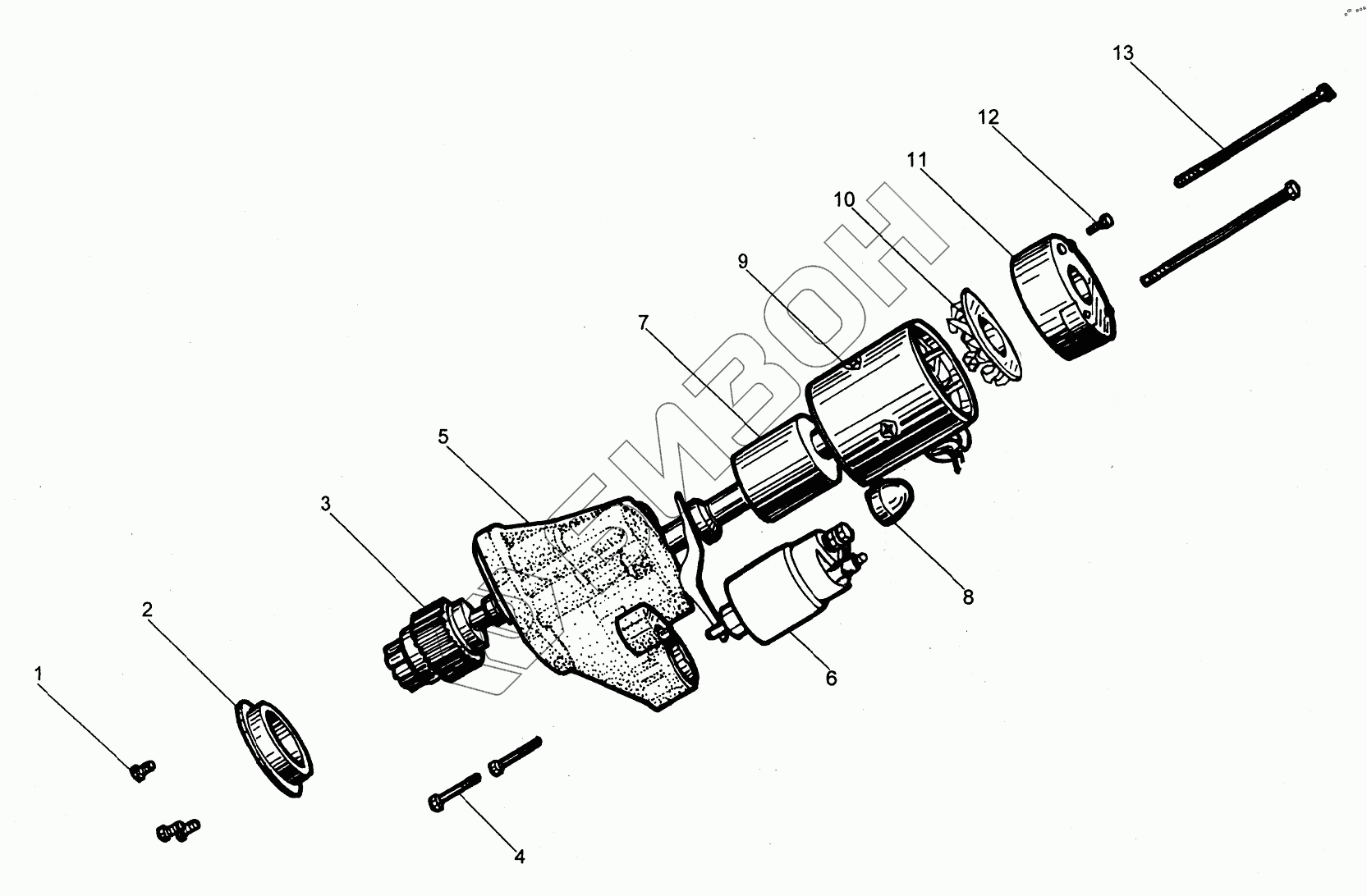 Графический каталог запасных частей к технике: XINCHAI A498BPG. Starting motor assembly