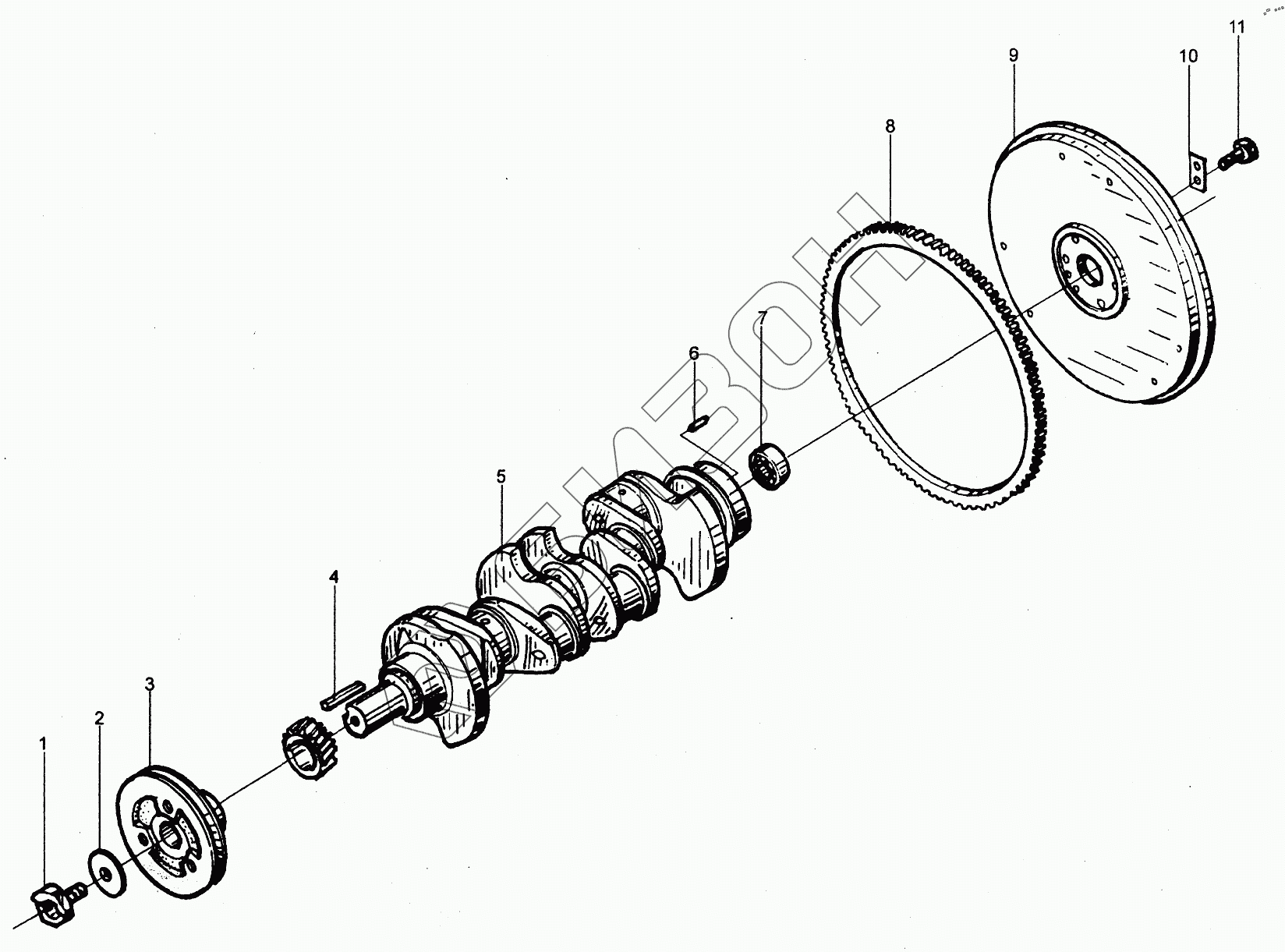Графический каталог запасных частей к технике: XINCHAI A498BT. 498BPG Crankshaft flywheel assembly