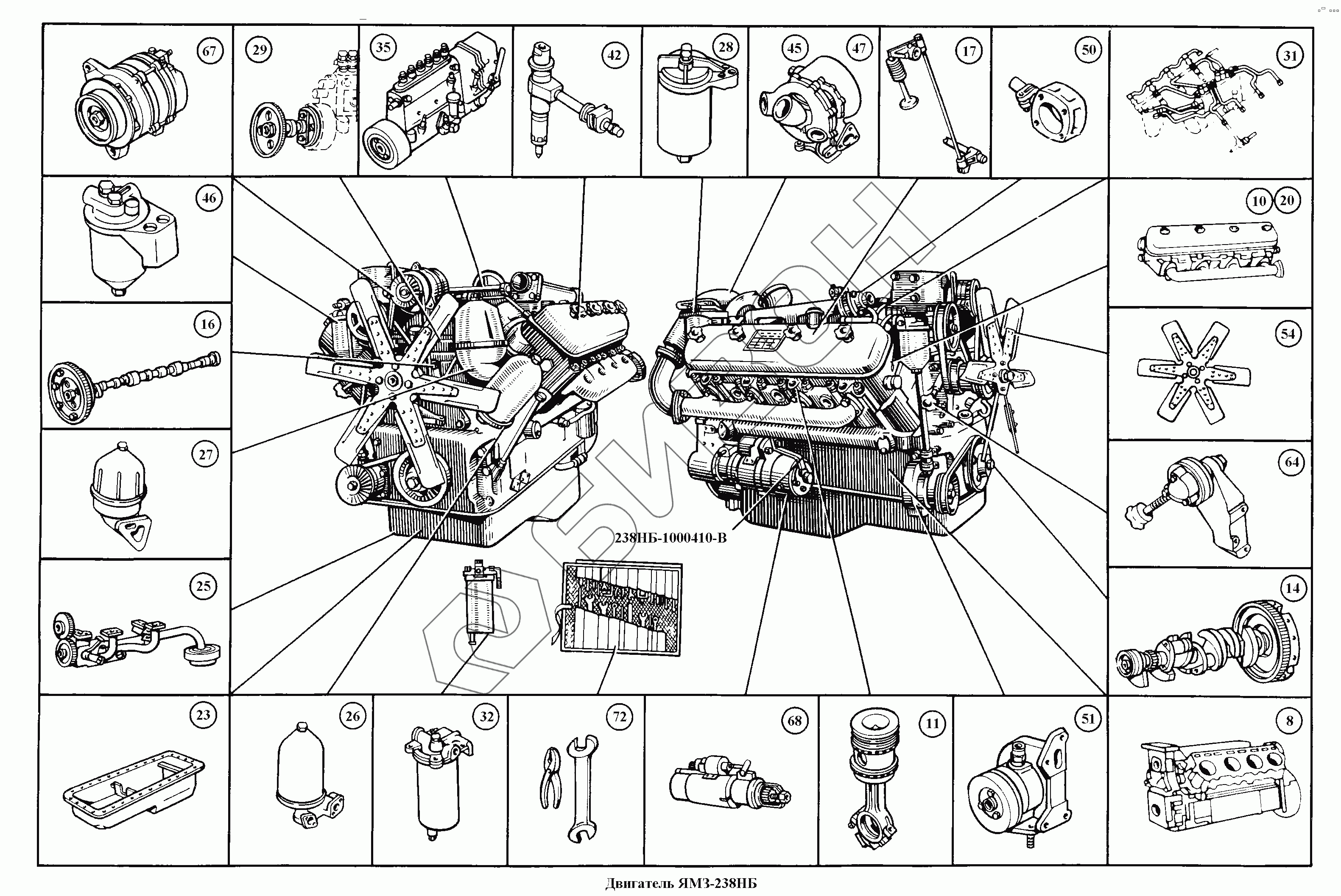 Графический каталог запасных частей к технике: ЯМЗ-236, -238, -238НБ. Двигатель ЯМЗ-238НБ