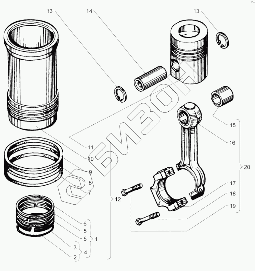 | 12 | 236-1004005-Б2 | Гильза, поршень, уплотнительные и поршневые кольца |